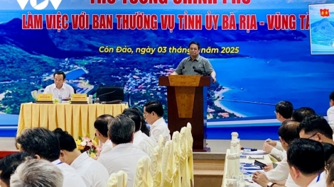 (VOVWORLD) - Während seines Aufenthalts auf Con Dao hat Premierminister Pham Minh Chinh am Samstag mit der Parteileitung der Provinz Ba Ria – Vung Tau über die sozioökonomische Entwicklung und die Gewährleistung der Sicherheit und der Verteidigung der Provinz im Allgemeinen und des Kreises Con Dao im Speziellen getagt.