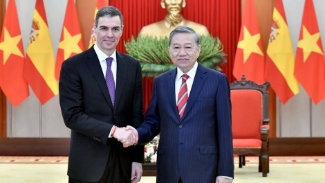(VOVWORLD) - KPV-Generalsekretär To Lam hat am Mittwoch in Hanoi den spanischen Premierminister Pedro Sanchez empfangen, der derzeit in Vietnam zu Gast ist.