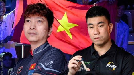Die beiden Billardspieler Duong Quoc Hoang und Bui Truong An nehmen am Premier League Pool 2025 teil