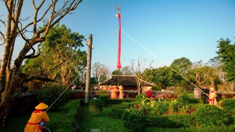 (VOVWORLD) - Am Mittwoch hat das Zentrum für Bewahrung des Denkmals der Kaiserstadt Hue die Zeremonie zur Aufstellung des Neu-Baums zum Neujahrsfest in der Hue-Zitadelle nachgemacht.