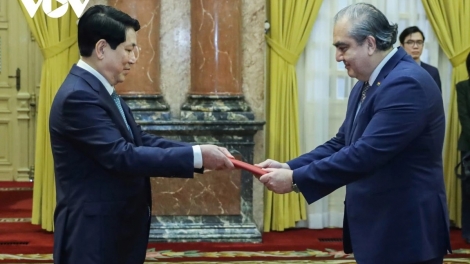 (VOVWORLD) - Am Donnerstagnachmittag hat Staatspräsident Luong Cuong die Botschafter aus Kuba, Simbabwe und Bolivien in Hanoi empfangen, die ihre Beglaubigungsschreiben überreicht haben.