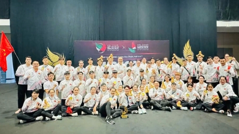 (VOVWORLD) - Das vietnamesische Pencak Silat-Team hat gerade die Weltmeisterschaft 2024 in Abu Dhabi in den Vereinigten Arabischen Emiraten 18 Gold-, 5 Silber- und 5 Bronzemedaillen abgeschlossen.