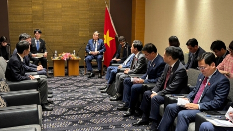 (VOVWORLD) - Während seines Besuchs in Japan hat Parlamentspräsident Tran Thanh Man am Mittwoch in Tokio den Gouverneur der Präfektur Nara, Yamashita Makoto, empfangen.
