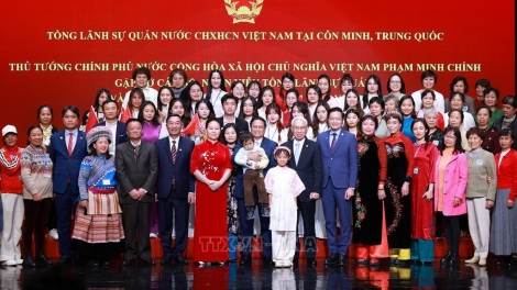 (VOVWORLD) - Während seiner Dienstreise in China hat Premierminister Pham Minh Chinh am Dienstag Mitarbeiter der vietnamesischen Vertretungen in China und Vertreter der vietnamesischen Community in der Provinz Yunnan getroffen.