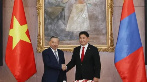 (VOVWORLD) - Im Rahmen seines Staatsbesuchs in der Mongolei haben KPV-Generalsekretär und Staatspräsident To Lam und der mongolische Präsident, Uchnaagiin Chürelsüch, bei einem Gespräch am Montag die Etablierung der umfassenden Partnerschaft zwischen Vietnam und der Mongolei erklärt und damit eine neue Phase in den künftigen bilateralen Beziehungen eröffnet.