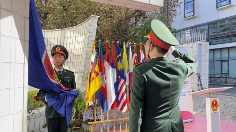 (VOVWORLD) - Zum 57. Gründungstag der südostasiatischen Staatengruppe ASEAN am 8. August hat die vietnamesische Botschaft in Paris das zeremonielle Hissen der ASEAN-Flagge organisiert.