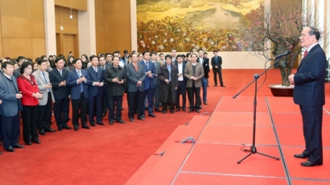(VOVworld) – Zum bevorstehenden Tetfest hat Parlamentspräsident Nguyen Sinh Hung am Freitag die Ausschüsse des Parlaments sowie die Beamten und Angestellten des ständigen Parlamentsausschusses beglückwünscht.