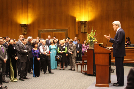Vor 20 Jahren haben Vietnam und die USA ihre Zusammenarbeit trotz vielen Unterschieden begonnen. Die Erinnerungen an einen grausamen Krieg waren noch vorhanden. Spitzenpolitiker und die Bevölkerung beider Länder mussten sich deshalb sehr anstrengen, um die beeindruckten Erfolge von heute zu erreichen. Zu diesen Erfolge trugen auch die US-Abgeordneten bedeutend bei, darunter der US-Außenminister John Kerry. In verschiedenen Rollen hat Kerry 14 Mal Vietnam besucht. Der jüngste Besuch fand im Dezember 2013 statt. Er setze sich ununterbrochen für die Versöhnung und die Verstärkung der Beziehungen zwischen Vietnam und den USA ein, sagt Kerry: