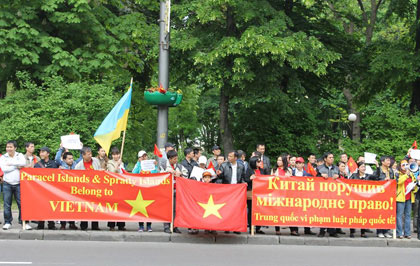 | Die in Russland lebenden Vietnamesen protestieren gegen die illegalen Fixierung der Bohrinsel Haiyang 981 durch China in der ausschließlichen Wirtschaftszone und im Kontinentalsockel Vietnams. (Foto: hanoimoi.com.vn) |
