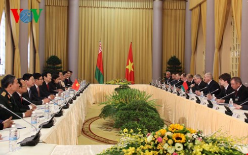 | Blick auf das Gespräch zwischen dem vietnamesischen Staatspräsident Truong Tan Sang und dem weißrussischen Präsident Alexander Lukaschenko. |