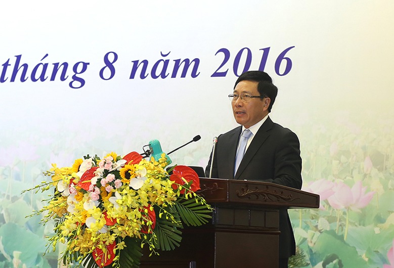 “In den vergangenen Jahren hat sich Vietnam intensiv in die Welt, nicht nur im Wirtschaftsbereich, sondern in allen Bereichen integriert. Vietnam hat außerdem zahlreiche Freihandelsabkommen unterzeichnet und war engagiert in der Kooperation für die Sicherheit. Vor allem hat sich Vietnam zum ersten Mal an der Entsendung von UN-Friedenstruppen beteiligt. Vietnam spielt eine wichtige Rolle in einigen internationalen Organisationen, wie dem UN-Menschenrechtsrat und der ASEAN. Das sind grundsätzliche Errungenschaften der auswärtigen Angelegenheiten.”