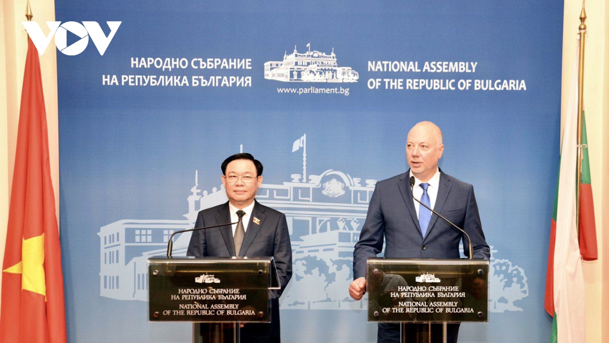 Parlamentspräsident Vuong Dinh Hue und sein bulgarischer Amtskollege, Rosen Zhelyazkov auf der Pressekonferenz nach dem Gespräche. (Foto: VOV) |