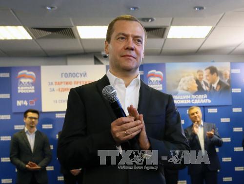 | Der Präsident der Partei "Einiges Russland" Dimitri Medwedew vor der Presse nach den Duma-Wahlen. (Foto: AFP/VNA) |