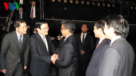 | Staatspräsident Truong Tan Sang ist am Montag in Indonesien eingetroffen. (Foto: VOVonline) |
