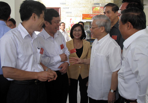 | KPV-Genralsekretär Trong unterhält sich mit Konferenzteilnehmern. |