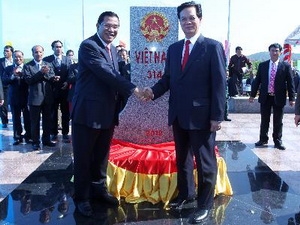 | Die Premierminister der beiden Länder bei Einweihung der Grenzsteine. |
