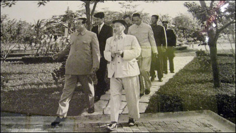 | Präsident Ho Chi Minh (r.) und Präsident Kim Il Sung im Jahr 1964 beim West-See in Vietnam. |