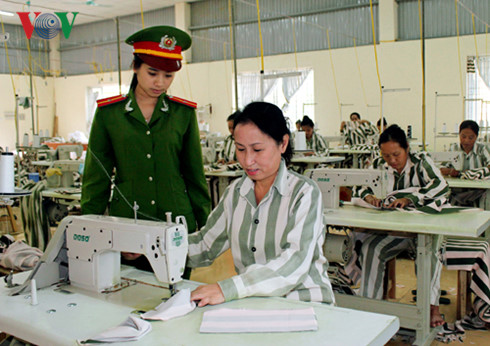 Gemeinsam mit der Gewährleistung der Rechte der Gefangenen auf Nahrung, Wohnraum, Weiterbildung und Beschäftigung bestimmen die Politik und Gesetze Vietnams die Unterstützung der Gefangenen bei der Wiedereingliederung in die Gemeinschaft durch Arbeit. Die Verordnung über Gefängnisregeln und die geänderte Verordnung über Regeln bei der Untersuchungshaft und vorläufiger Festnahme von 1988 bestimmen, dass Gefangene acht Stunden pro Tag arbeiten. Weibliche Gefangene in der Schwangerschaft können in den Mutterschutz gemäß der gemeinsamen Bestimmung des Staates gehen. Aufgrund von guter Führung können Gefangene zum Neujahrsfest Tet und zum Nationalfeiertag begnadigt oder vorzeitig entlassen werden. Vor der Begnadigung wählen Gefangene Mitgefangene aus, die sich vorbildlich verhalten und die Regeln des Gefängnisses eingehalten haben. Die ausgewählten Häftlinge können danach begnadigt werden. Im Zeitraum von 2009 bis 2015 wurden 63.500 Gefangene begnadigt und vorzeitig entlassen. Seit einigen Jahren setzt der Staat zahlreiche Politiken für Gefangene um, darunter die Politik über Berufsausbildung. Fast alle im Jahr 2015 begnadigten Gefangenen beherrschen einfache Berufe, damit sie sich einfacher in die Gemeinschaft eingliedern können.