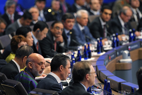 | Der afghanische Präsident Hamid Karzai nimmt an einer Sitzung des Nato-Gipfeltreffens teil. (Foto: AFP) |