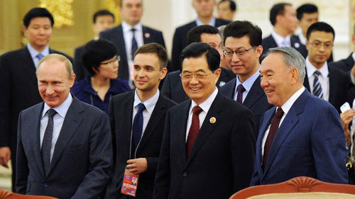 | Der chinesische Staatspräsident Hu Jintao begrüßt Staatschefs der SCO-Mitgliedsländer. (Foto: Internet) |