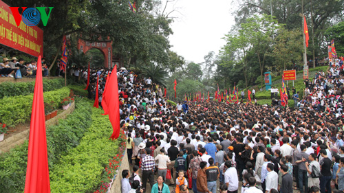 (VOVworld) – Der Todestag der Hung Könige ist ein Nationalfeiertag und wird in Vietnam landesweit gefeiert. Er findet am 10.Tag des dritten Monats nach dem vietnamesischen Mondkalender statt. An diesem Tag richten alle Vietnamesen ihre Gedanken auf den Tempelkomplex zu Ehren der Hung-Könige in der Gemeinde Hy Cuong in der nordvietnamesischen Provinz Phu Tho. Der Todestag der Hung-Könige ist ein Symbol für den Zusammenhalt der Vietnamesen.