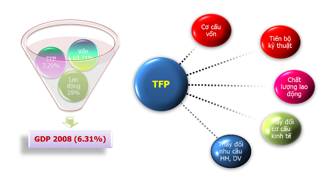 Laut dem Minister für Wissenschaft und Technologie Nguyen Quan hat die totale Faktorproduktivität ein Jahr später ein stabiles Wachstum erreicht. Im Zeitraum von 2011 bis 2014 leistete die TFP einen Beitrag von 26 Prozent zum Wirtschaftswachstum Vietnams. Das Wachstum der TFP bedeutet gleichzeitig auch das Wachstum des Bruttoinlandsprodukts ohne Abhängigkeit der Steigerung des Kapitals, der Arbeiterzahl sowie der Erschließung der Naturressourcen. Heutzutage schenken der TFP zahlreiche Länder in ihrer Strategie zu einer nachhaltigen Wirtschaftsentwicklung große Aufmerksamkeit für , darunter auch Vietnam. Laut dem Parteibeschluss habe sich Vietnam zum Ziel gesetzt, dass bis 2020 Wissenschaft und Technologie durch die totale Faktorproduktivität etwa 35 Prozent zum Wirtschaftswachstum beitragen sollen, so Minister Nguyen Quan weiter: