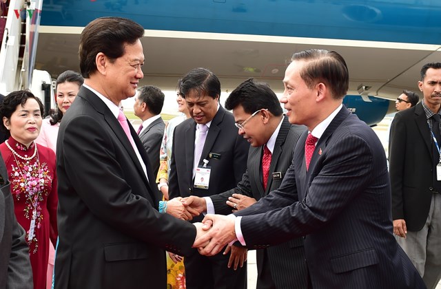 | Premierminister Nguyen Tan Dung (l.) ist auf dem Flughafen in Kuala Lumpur eingetroffen. |