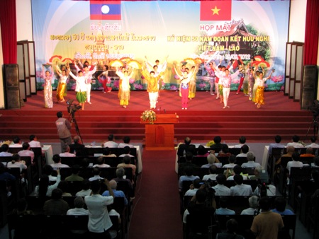 | Eine Vorführung zum 50. Jubiläum der Aufnahme diplomatischer Beziehungen zwischen Vietnam und Laos. (Foto: Internet) |
