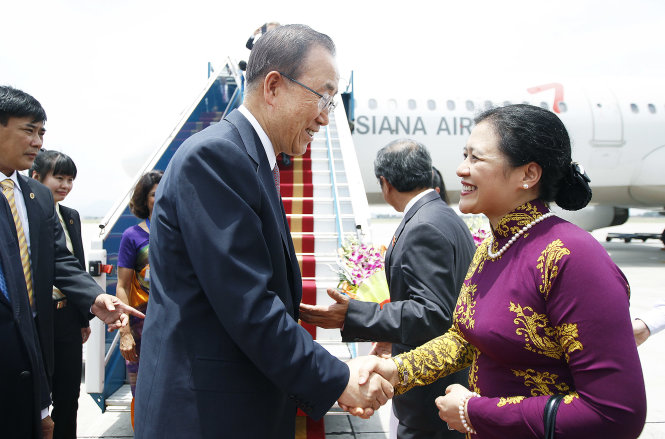 | UN-Generalsekretär Ban Ki-moon (l.) wurde in Vietnam herzlich willkommen. (Foto: tuoitre.vn) |