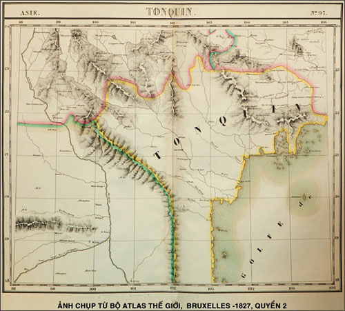 Das Namenschreiben auf alten westlichen Landkarten beweist, dass portugiesische Seeleute bereits im 16. Jahrhundert die geographische Verbindung zwischen der zentralvietnamesischen Küste und den Inseln Cu Lao Cham, Cu Lao Re und Cu Lao Xanh erkannten. Auf einer Landkarte von 1827 steht an der rechten Seite der Paracel-Inselgruppe ein Rechteck, das ein Drittel der Fläche der Landkarte beträgt. In diesem Rechteck stehen die Zeilen „Empire d’An-nam“, auf Deutsch Königreich von Annam, und Hauptinformationen über das Königreich Annam, wie Phisique oder Aussehen, Politique oder Politik, Statistique oder Statistik und Mineralogie oder Mineralien. All das beweist, dass der Autor des Atlasses die Paracels als Teil des Territoriums des damaligen Königreiches Annam sah.