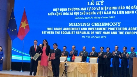 (VOVWORLD) - Nach langjähriger Verhandlung sind das Freihandelsabkommen zwischen Vietnam und der EU (EVFTA) und das Investitionsschutzabkommen (EVIPA) offiziell am 30. Juni in Hanoi unterzeichnet worden. Dieses Ereignis markiert eine Wende in der Partnerschaft und der umfassenden Zusammenarbeit zwischen Vietnam und der EU.