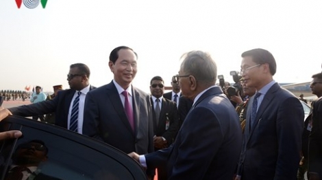 (VOVWORLD) - Auf Einladung des bangladeschischen Präsidenten Mohammad Abdul Hamid stattet Staatspräsident Tran Dai Quang Bangladesch einen Besuch ab. Der Besuch dauert von Sonntag bis Dienstag. Dadurch wolle der Staatspräsident bekräftigen, dass Vietnam die traditionellen guten Beziehungen und die Kooperation mit Bangladesch intensivieren möchte.