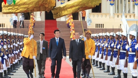 (VOVworld) – Am Dienstag hat Staatspräsident Truong Tan Sang seinen Besuch in Kambodscha auf die Einladung des kambodschanischen Königs Norodom Sihamoni begonnen. Ziel des Besuchs ist es, die freundschaftliche Beziehung und die Zusammenarbeit in allen Bereichen zu vertiefen.