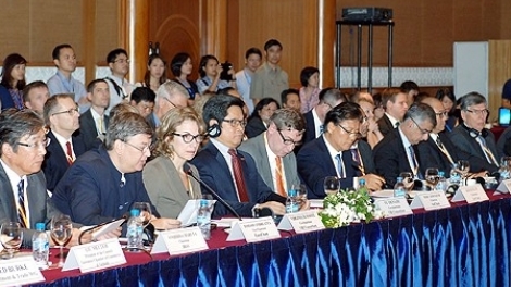 (VOVworld) – Vietnam führt derzeit Verhandlungen für zahlreiche Freihandelsabkommen. Die neuen Situationen der Sicherheitslage in der Region haben das Investitionsumfeld in Vietnam beeinflusst. Wie können wir die neuen Chancen der Freihandelsabkommen wahrnehmen? Wie kann man das Vertrauen der Investoren auf die Produktion in der neuen Lage gewinnen? Alle diese Fragen wurden auf dem vietnamesischen Unternehmensforum am Donnerstag in Hanoi diskutiert.