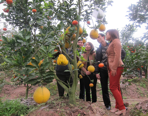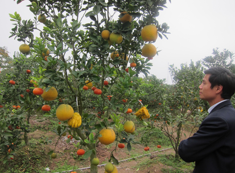 Neben der Beschäftigung mit Bäumen zum Tetfest mit verschiedenen Obstsorten mietete die Familie Giap eine Agrarfläche mit mehr als 5.000 Quadratmetern, um Süßmandarin- und Zitronenbäume anzupflanzen. In der Gemeinde Cao Vien ist die Familie Giap Vorreiter bei der Umstrukturierung der Anbauflächen. Dazu Nguyen Dang Phuong, Sekretär der Parteileitung der Gemeinde Cao Vien: