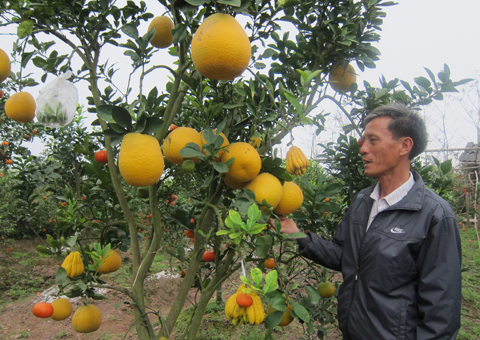 (VOVworld) – Dank seiner Erfahrung beim Obstanbau ist es Bauer Le Duc Giap aus der Gemeinde Cao Vien des Kreises Thanh Oai von Hanoi gelungen Bäume mit verschiedenen Obstsorten zu veredeln, um diese seinen Kunden zum Neujahrsfest Tet anbieten zu können. Es gibt Bäume mit fünf oder sieben verschiedenen Obstsorten, die gleichzeitig zum Tetfest reif sind. Neben Kumquat- und Pfirsichbäumen, die typisch für das Tetfest sind, kann man auch aus Bäumen mit verschiedenen Obstsorten auswählen.