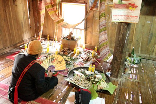 Für die Volksgruppe der Muong Vang ist das traditionelle Neujahrsfest Tet das wichtigste und größte Fest des Jahres. Zu diesem Anlass bereitet jede Familie ein Tablett mit einer vollen Mahlzeit für ein Ritual des Ahnenkults zu. Alle Familien der Muong Vang, ungeachtet ob diese arm oder reich sind, züchten im Laufe des Jahres ein Schwein, um es während des Neujahrsfests zuzubereiten. Die einzige Nahrung bei dieser besonderen Mahlzeit ist Schweinefleisch. Dazu sagte der Einheimische Bui Van Luan aus der Ortschaft Chieng 4 der Gemeinde Tan Lap in Hoa Binh: