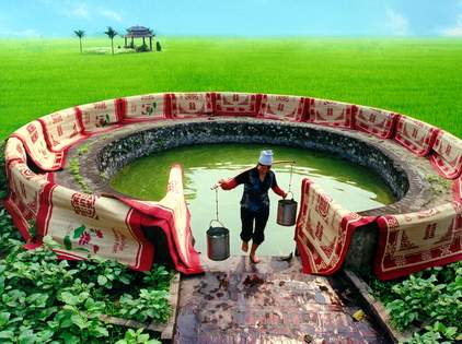 Brunnen in den Dörfern, Tempeln und Pagoden nach Feng Shui-Prinzipien gebaut