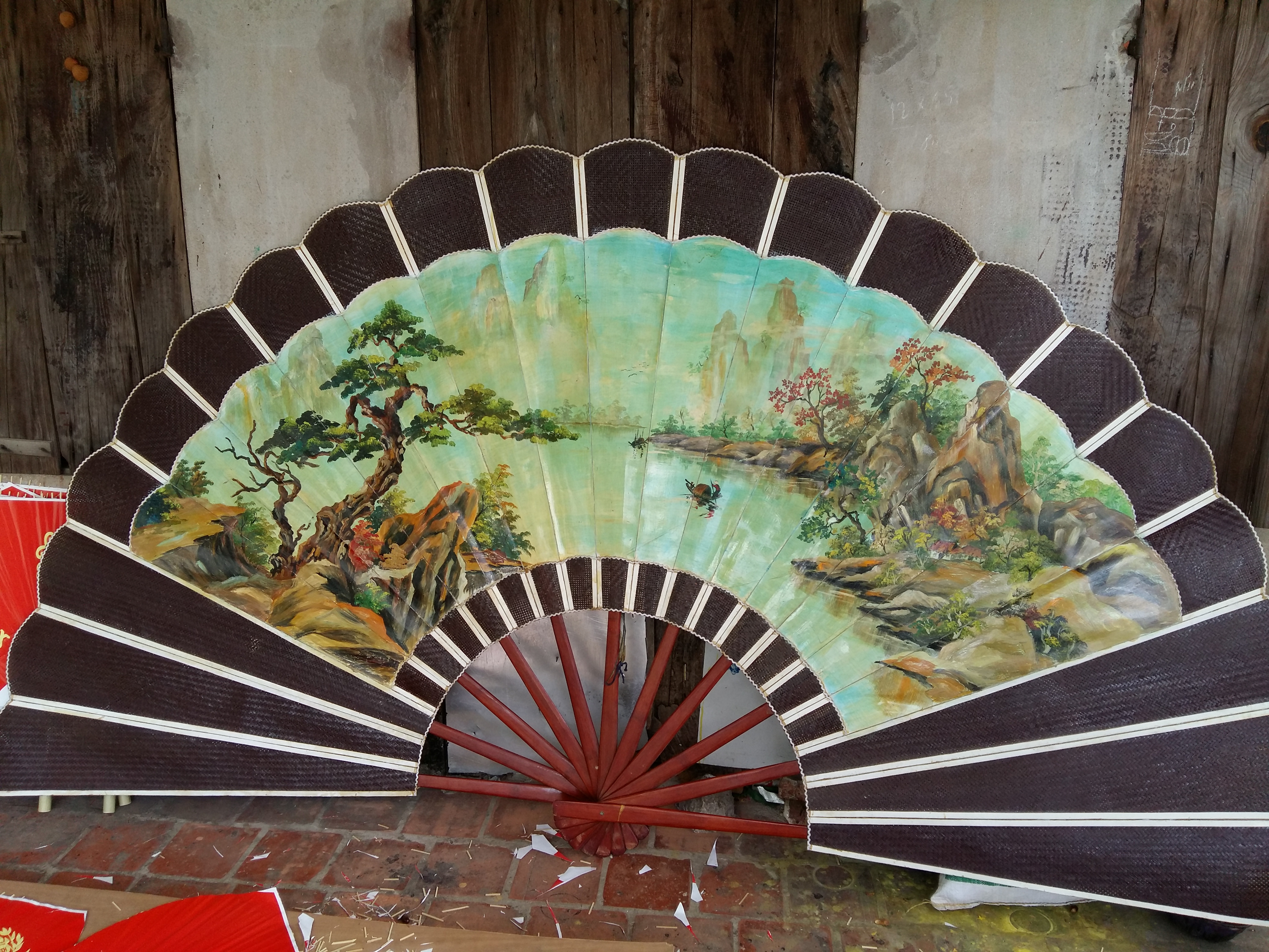 “Die Luxusfächer werden als Dekorationsstücke oder Souvenirs benutzt. Die Fächerstreifen werden aus Bambus gemacht. Sie können auch aus Horn hergestellt werden. Auf dem Fächer werden Blumen oder Bilder der Tiere wie Drachen und Phönix gemalt. Im Vergleich zu Fächern der anderen Dörfer sind Ornamente auf den Fächern von Chang Son einzigartig. Unsere Fächer werden derzeit als Requisit bei Cheo- und Tuong-Theaterstücken oder bei traditionellen Tänze benutzt.”