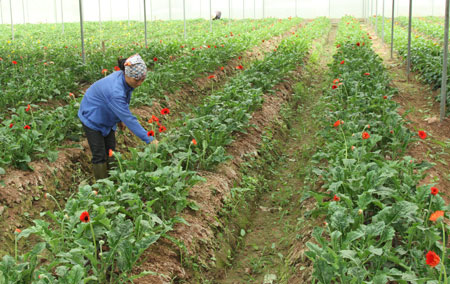 | Blumenanbau in der Gemeinde Thuy Huong. (Foto: hanoimoi.com.vn) |