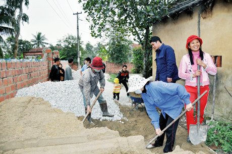 | Bewohner im Wohnviertel Ha An in Quang Yen in der Provinz Quang Ninh tragen zum Straßenbau bei. (Foto: baoquangninh.com.vn) |