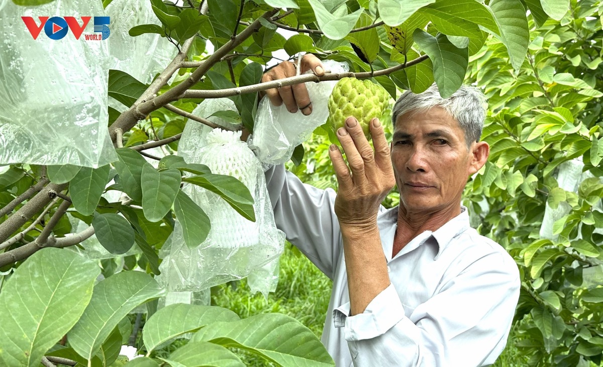 Phan Van Bit in Can Tho verdient gut von Zimtapfel-Anbau. (Foto: Pham Hai/VOV) |