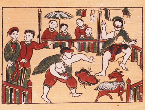 Das Dong Ho-Bild zum Thema „Blindekuh“- ein beliebtes Spiel im Frühling.