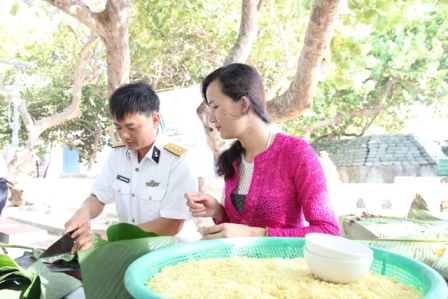 Das Tetfest im Inselkreis Truong Sa beginnt mit den Schiffen, die Nahrungsmittel und andere nötige Dinge zum traditionellen Neujahrsfest vom Festland zur Inselgruppe transportieren. Nachdem die Waren ausgeliefert wurden beschäftigen Offiziere, Soldaten und Einwohner sich mit der Vorbereitung auf das Tetfest, wie beispielsweise Chung-Kuchen wickeln, Häuser aufräumen und dekorieren. Sie bereiten sich ebenfalls auf die Musikvorführungen für die Zeit zum Jahreswechsel vor. Nguyen Thi Thu Sang, eine Einwohnerin im Inselkreis Truong Sa erzählte, die Stimmung vor dem Tetfest auf der Inselgruppe sei nicht so lebhaft wie auf dem Festland. Es gebe etwa keine lebhaften Märkte vor dem Neujahresfest. Die Einwohner hier könnten allerdings die Zuneigung der Einwohner im ganzen Land für die Offiziere, Soldaten und Einwohner in der Kleinstadt Truong Sa fühlen: