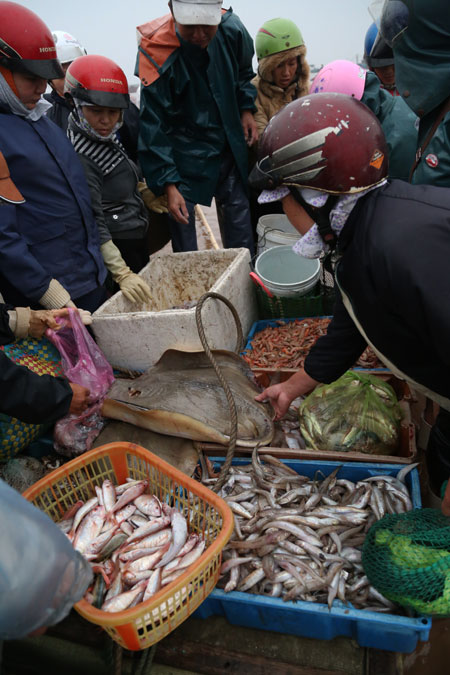 Käufer und Verkäufer kennen sich so gut, dass sie sich gegenseitig vertrauen und auf die Kontrolle der Qualität der Fische verzichten. Der Handel mit den Fischen auf dem Markt dauert etwa eine Stunde. Die Fische werden dann kartonweise verpackt und mit Mopeds oder LKWs zu verschiedenen Märkten gefahren. Nachmittags um etwa 16 Uhr öffnet der Fischmarkt erneut. Bis zu 1000 Fischerboote ankern am Hafen. Der Fischfang kostet pro Fahrt umgerechnet etwa mehr als 100 Euro. Der Umsatz für Fische liegt bei rund 200 Euro. Zur Hochsaison kann der Preis auch steigen. Der Fischfang an der Küste von Giao Hai hängt sehr vom Wetter ab. Die Fischer in Giao Hai sind sich aber sicher, dass sie ihrem Beruf treu bleiben wollen, so Mo weiter.