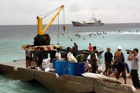 | Waren für das Tetfest werden nach Song Tu Tay-Insel transportiert. (Foto: nhandan.com.vn) |