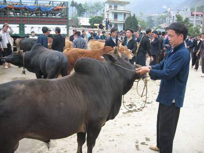 Vang Mi Dinh ist ein Kuh-Händler. Er kauft Kühe aus der Region, pflegt sie und verkauft sie dann weiter. Bis zu 80 Prozent der Verkäufer auf dem Markt sind professionelle Viehhändler. Bei den restlichen Händlern handelt es sich um Bewohner aus der Region, die ihre eigenen Tiere auf dem Markt anbieten.