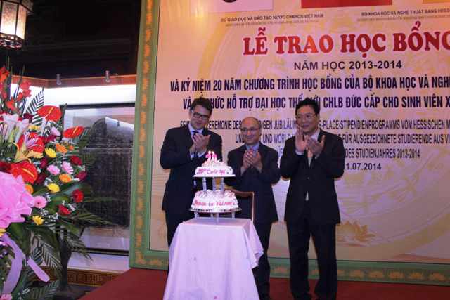 (VOVworld) – Seit 20 Jahren vergeben das hessische Ministerium für Wissenschaft und Kunst und der deutsche World University Service, WUS, Stipendien an vietnamesische Studenten. Anlässlich des Vietnam-Besuches einer Delegation des Ministeriums für Wissenschaft und Kunst des Landes Hessen haben beide Seiten das 20-jährige Jubiläum des Stipendienprogramms im Literaturtempel in Hanoi gefeiert und Stipendien an ausgezeichnete Studentinnen und Studenten aus schwierigen Verhältnissen überreicht.