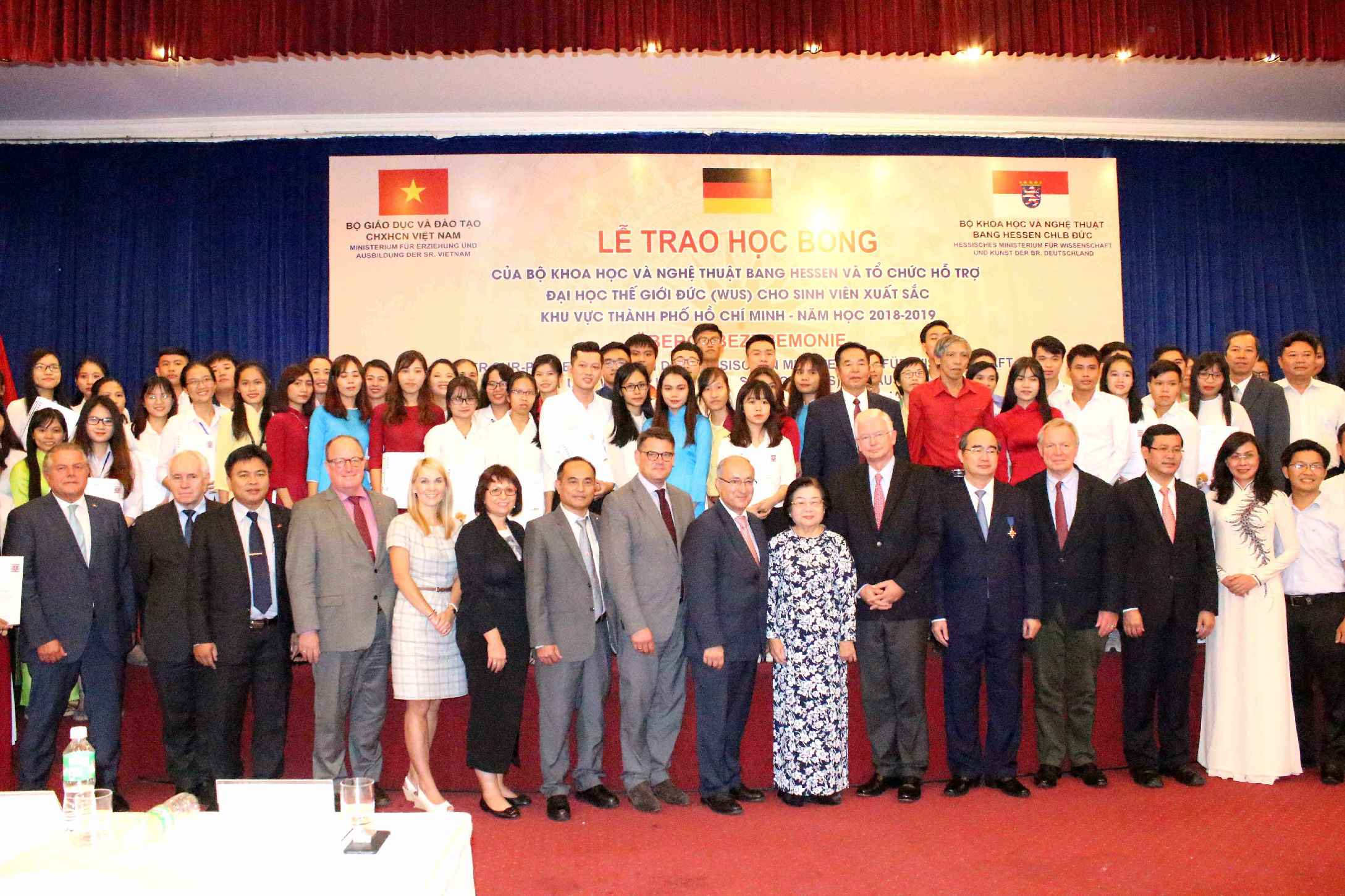 (VOVWORLD) - Die Stipendien des hessischen Ministeriums für Wissenschaft und Kunst und des World University Service werden seit 25 Jahren an vietnamesische Studierende überreicht; sie sind damit eines der längsten Stipendienprogramme in Vietnam. Aus der Idee zur Unterstützung für Studierende mit einer kleinen Geldmenge von 12 DM, also damals für ein Paar Kinokarten in Deutschland, ist inzwischen ein Stipendium von 216 Euro geworden.