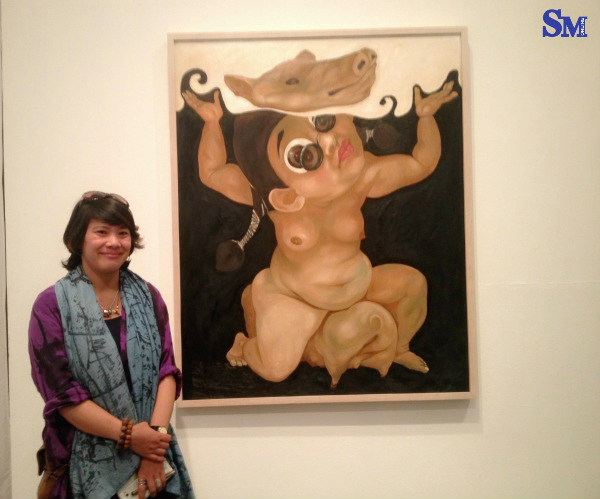 | Malerin Tran Hoang Hai Yen und ihr Bild namens „Die Fee“. (Foto: songmoi.vn) |